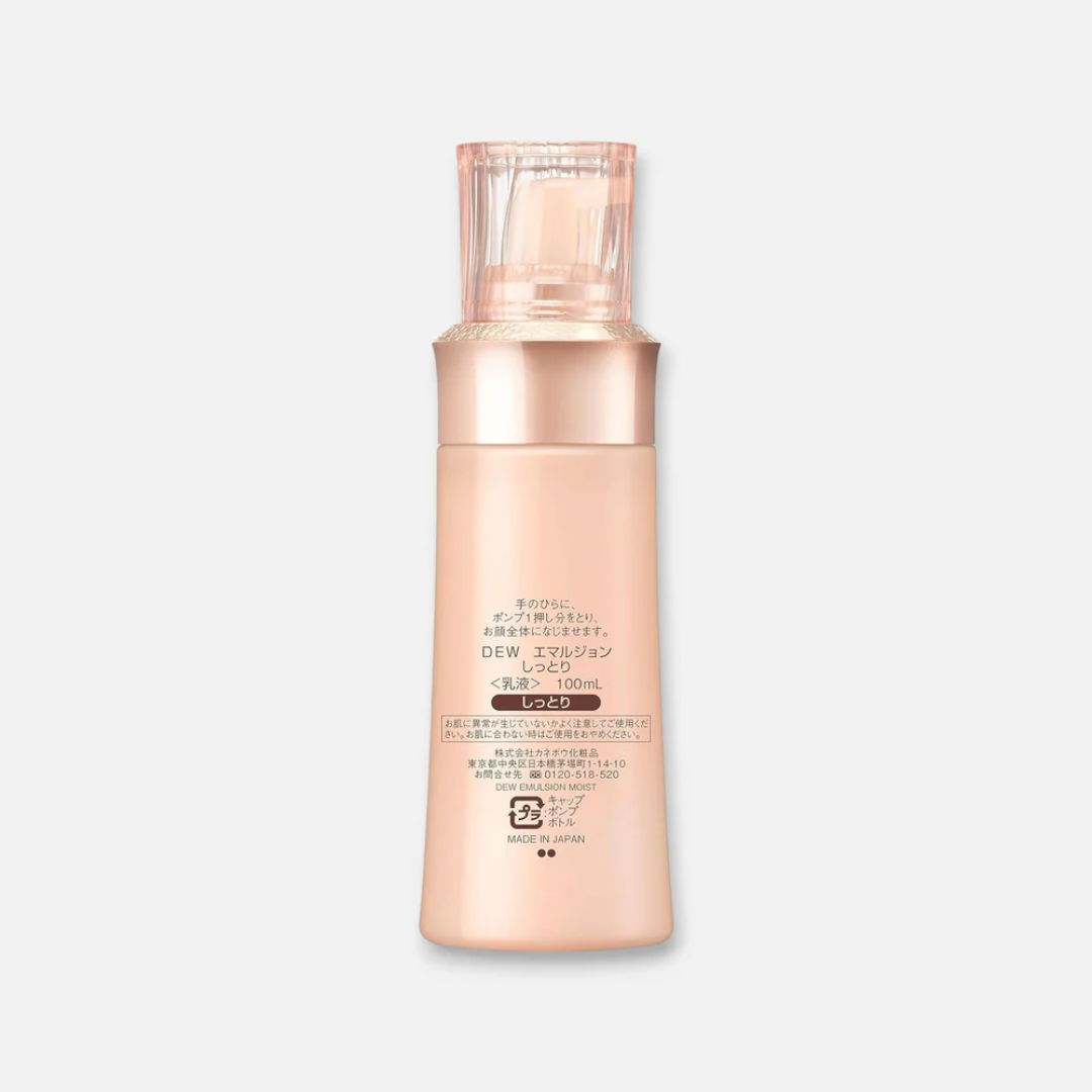 DEW Emulsão "Emulsion Moist" é uma emulsão facial luxuosa que combina hidratação profunda com cuidados antienvelhecimento, deixando a pele macia, firme e radiante. Enriquecida com o exclusivo Hiro Support α, proporciona nutrição intensa e fortalece a barreira cutânea, garantindo elasticidade e viço ao longo do dia. Sua textura leve e sedosa é rapidamente absorvida, sem deixar sensação oleosa, tornando-se ideal para todos os tipos de pele.