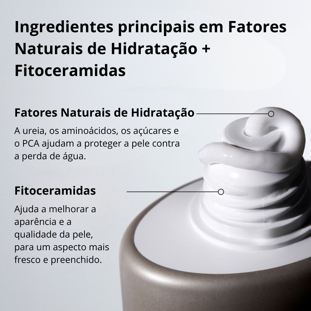 Sua fórmula combina os Natural Moisturizing Factors (NMF) — compostos naturalmente presentes na pele — com PhytoCeramides de origem vegetal, criando um sistema de hidratação que ajuda a restaurar e manter o equilíbrio natural da pele.