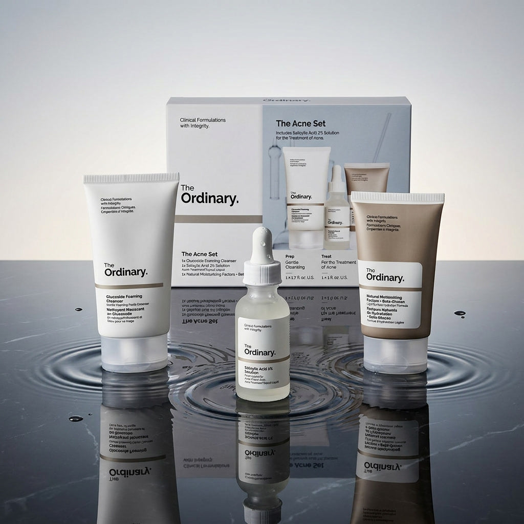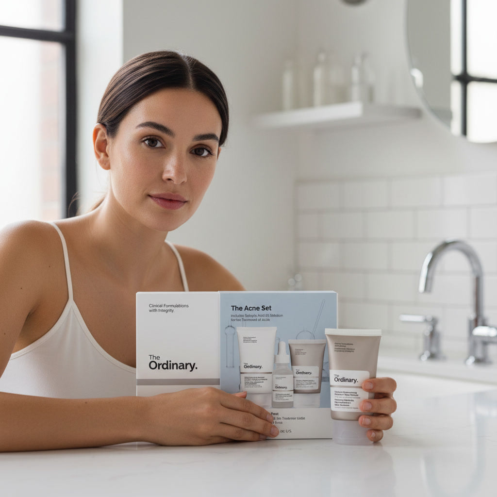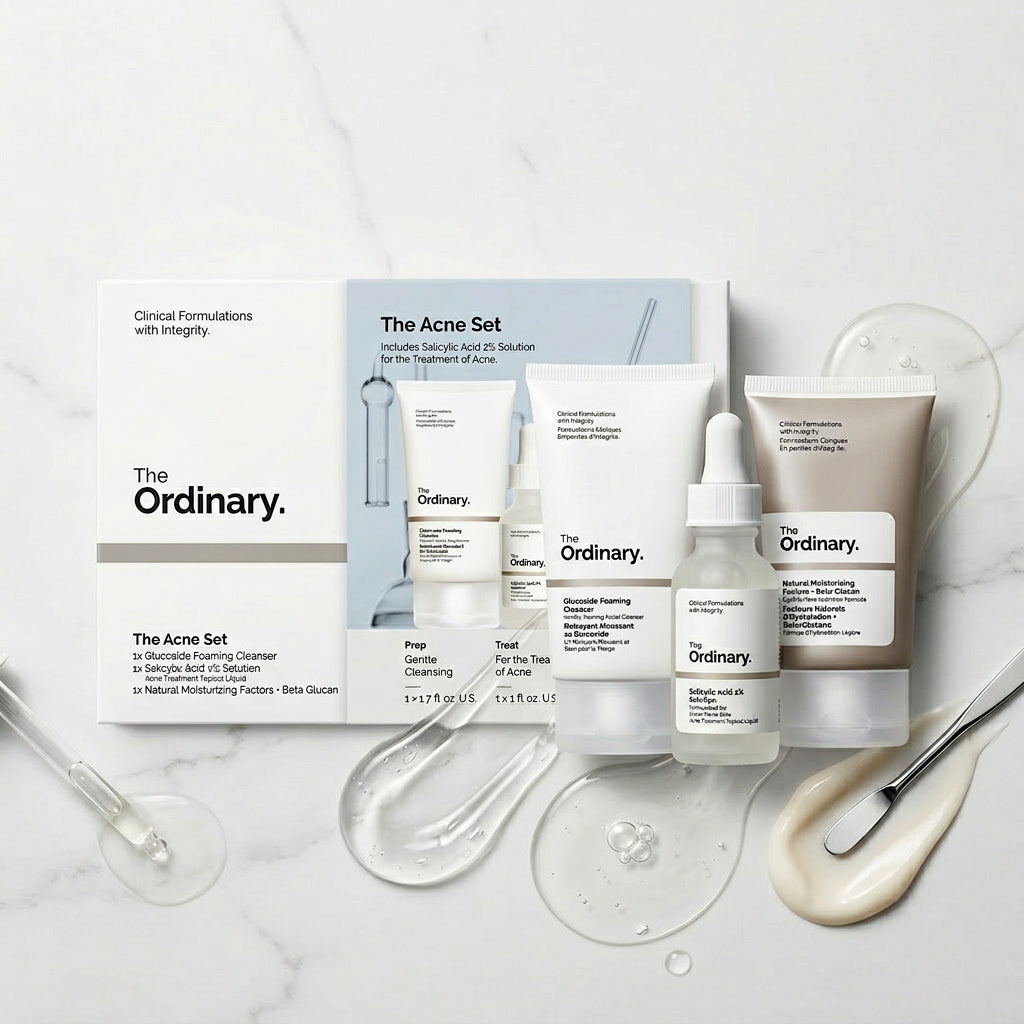 O The Acne Set da The Ordinary é um kit de cuidados com a pele desenvolvido para ajudar a limpar, tratar e hidratar a pele com tendência à acne.